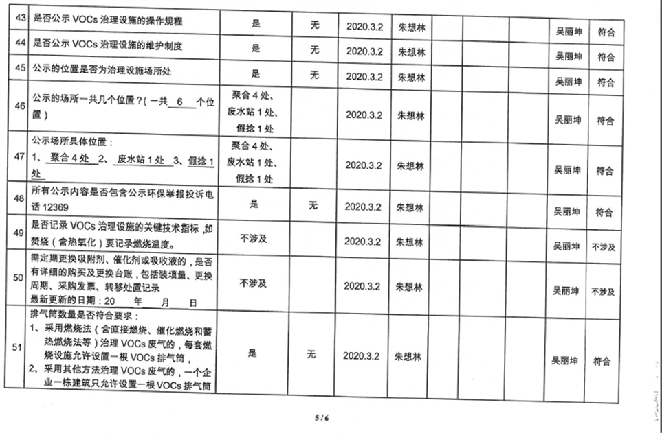 廈門市揮發性有機物污染防治企業自查表(2020年第二季度)