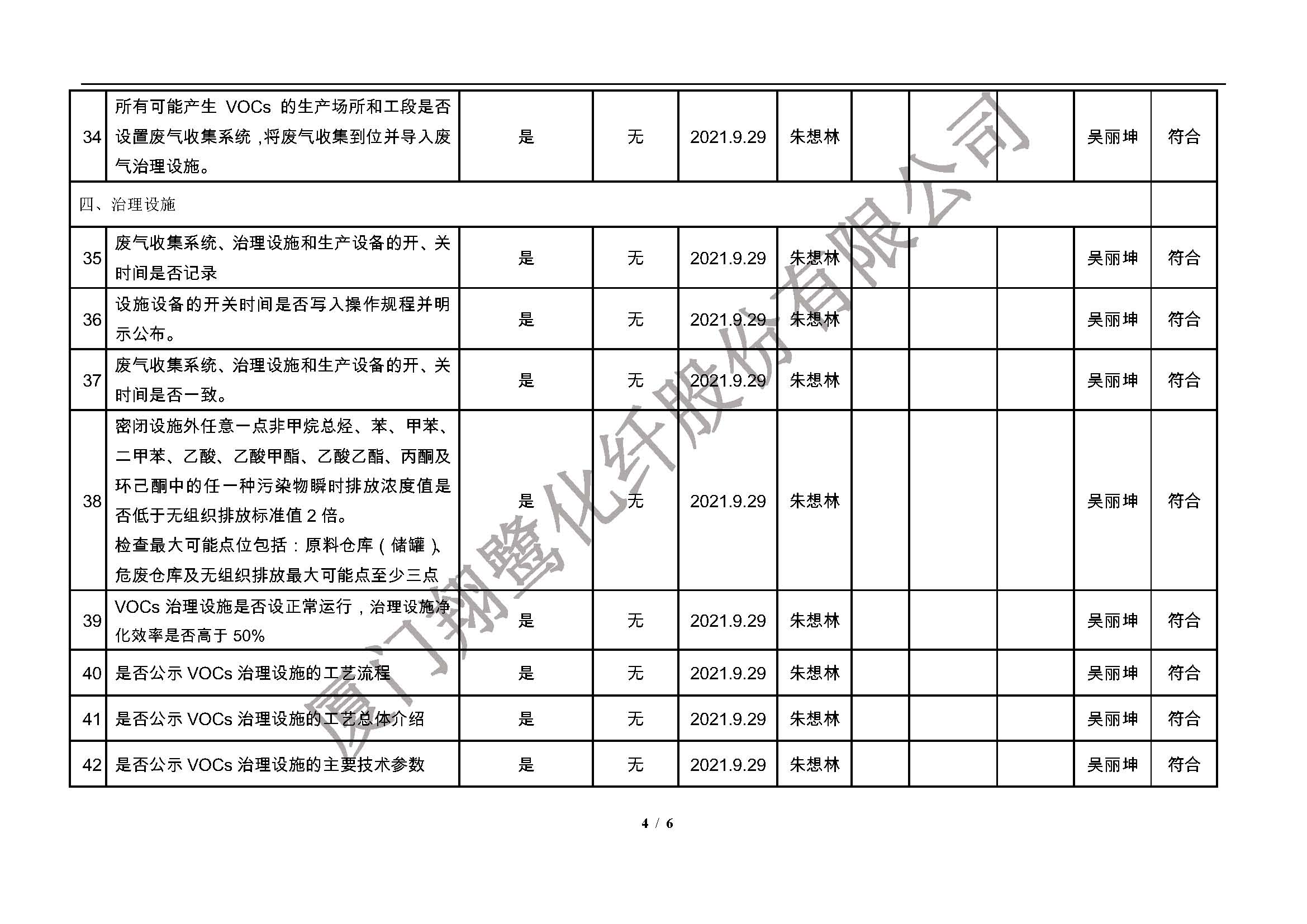 廈門市揮發(fā)性有機(jī)物污染防治企業(yè)自查表 (2021年 第四季度)